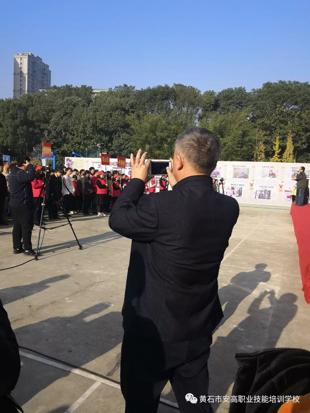 程校长也按捺不住激动的心情,拍下了这有序又热闹的一幕