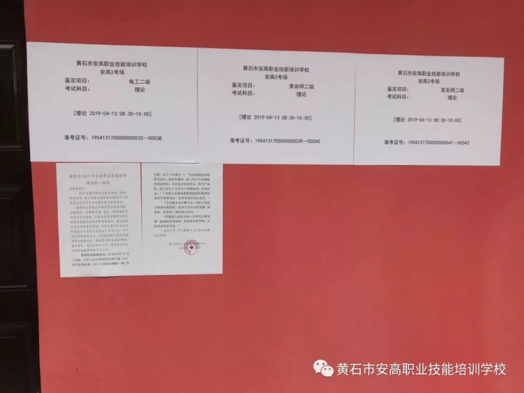 4月13日国家职业资格全省统一鉴定考试(黄石考点)